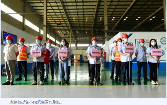 别担心!这是韶关市比亚迪实业有限公司正在开展叉车应急救援演练活动,现场模拟一名叉车司机在驾驶叉车时违章操作,导致一名员工被撞倒,随后立即启动公司救援预案采取的一系列措施的情境。